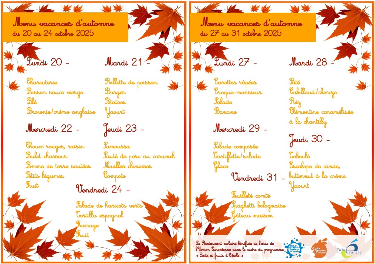 Voici les menus du 20 au 31 Octobre. On va se régaler à la Maison de l’Enfance Actualité | Er mare-mañ 16 octobre 2025 Voici les menus du 20 au 31 Octobre. On va se régaler à la Maison de l’Enfance
