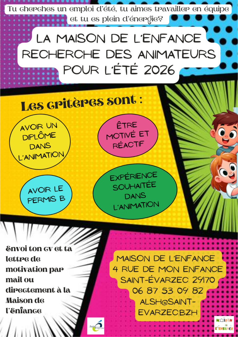 La Maison de l’Enfance cherche des animateurs pour l’été 2026.